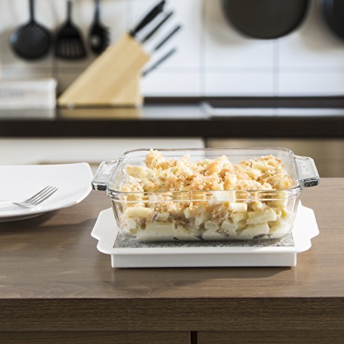 Keep your food hot with the warming plate from Chef Buddy. Simply place the plate in your microwave for a few minutes. The center of the stone becomes hot while the handles stay cool to touch. The Granite core transfers heat to the dish. Removable Granite insert for easy cleaning. Can be used indoors or outdoors, no cords or batteries are required. Made of White plastic with Granite insert that measures 7.75 inches x 7.75 inches.Feature