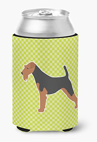 Caroline's Treasures Airedale Terrier Checkerboard green Can or Bottle Hugger BB3857CC, Can Hugger, Multicolor