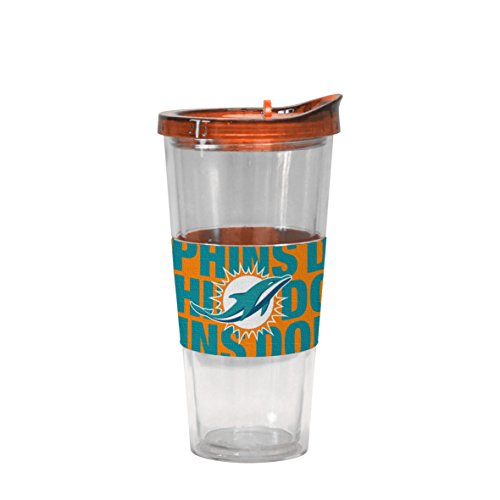 NFL Miami Dolphins Bold Slider Top Tumbler with Neoprene Sleeve, 22-ounce