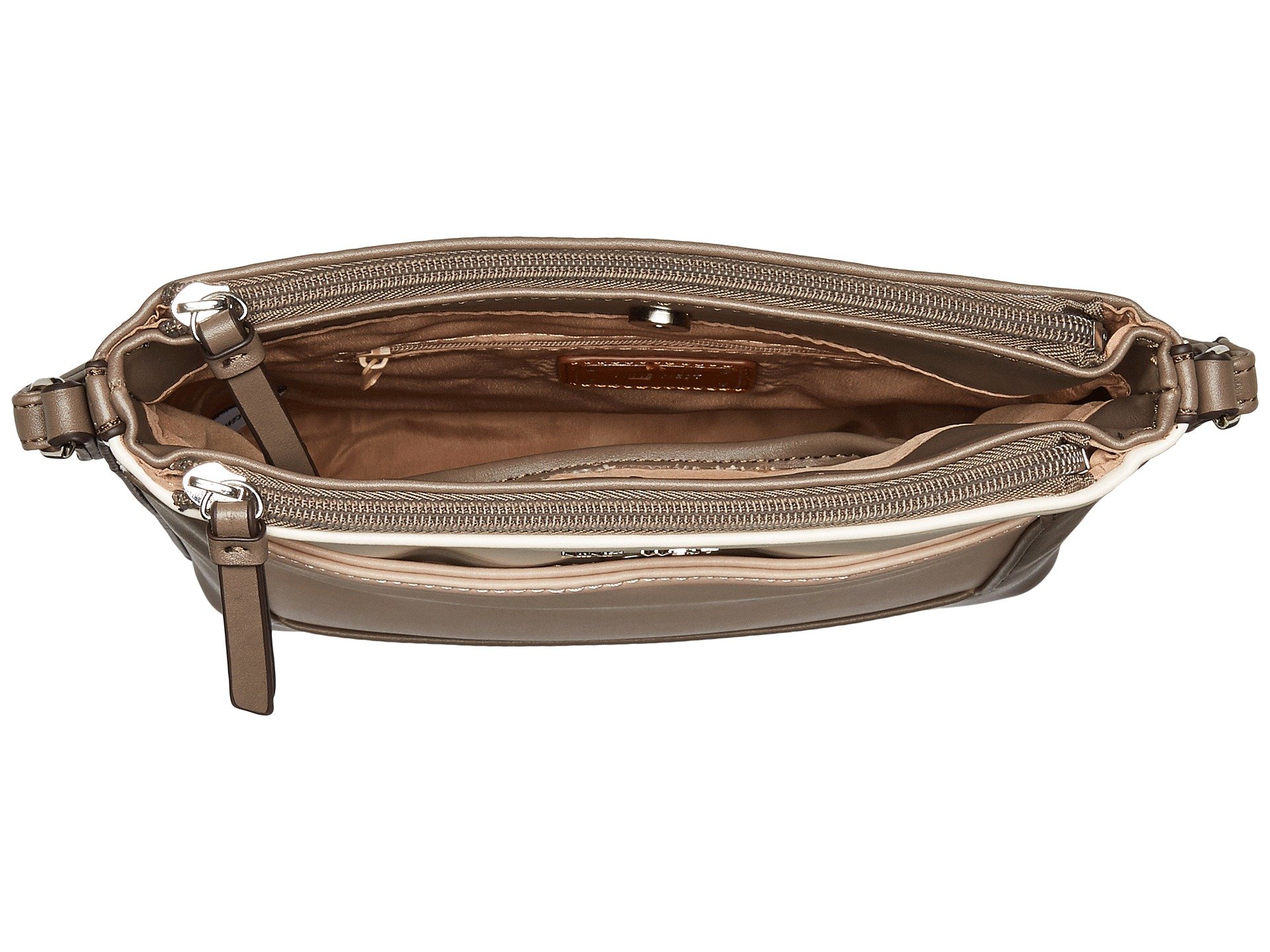 | Product Information SKU: #9047998Remind yourself of your worth with the Nine West? Remind Me Crossbody.Faux-leather construction.Button-snap closure for easy access with two zippered compartments.Adjustable shoulder strap.Exterior boasts metal brand decor and front button-snap pocket.Lined interior features a zipper pocket and two slip pockets.Imported.This product may have a manufacturer's warranty. Please visit the manufacturer's website or contact us at warranty@support.zappos.com for full manufacturer warranty details.Measurements: Bottom Width: 10 in Depth: 2 1?2 in Height: 8 in Strap Length: 51 in Strap Drop: 24 in Weight: 13.4 oz |