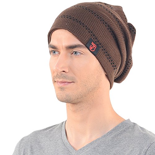 (FORBUSITE)/Accessories/Hats/DIRECT FROM USA/FORBUSITE Mens Slouchy Long Beanie Knit Cap Skull Winter Hat Brown