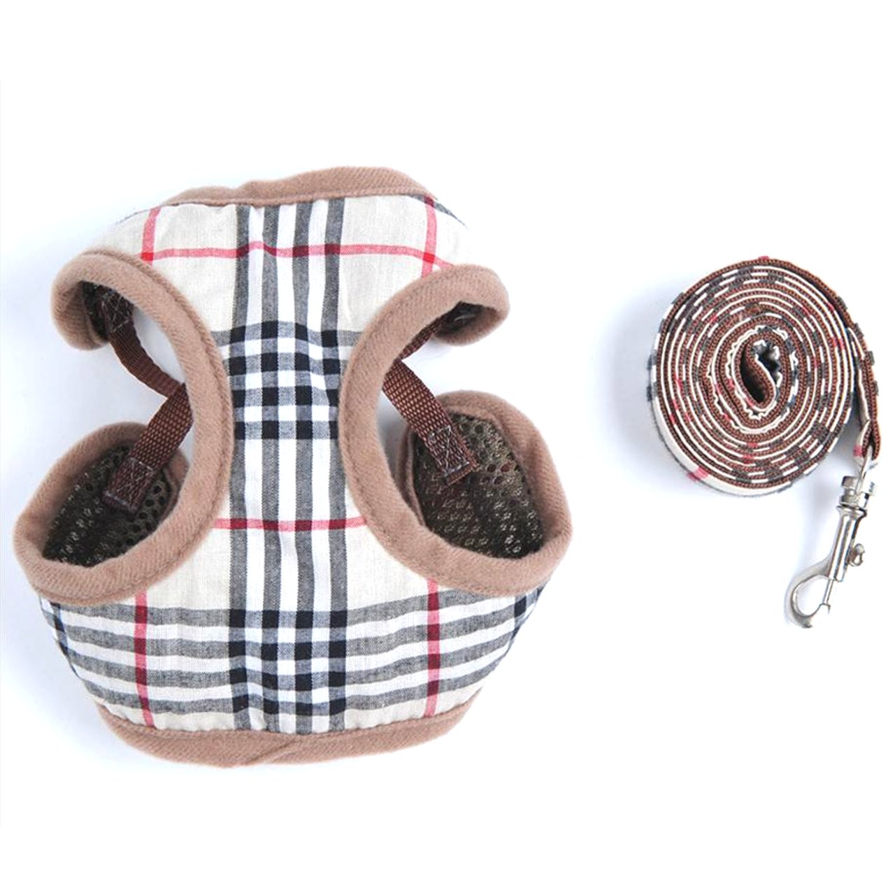 ◆ Pet Supplies Dog Harness & Lead Set Hairstyle Breast Soft Air Mesh Brown Check Pattern ◆