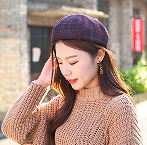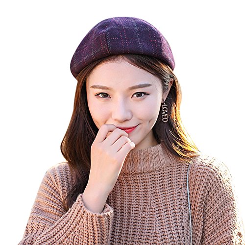 Product DescriptionGerilea 2018 Fashion Women Retro Beret Hat Warm Plaided Fedora Beanie Skull Caps0