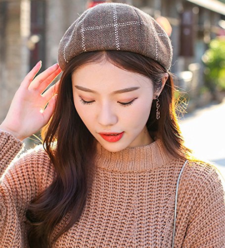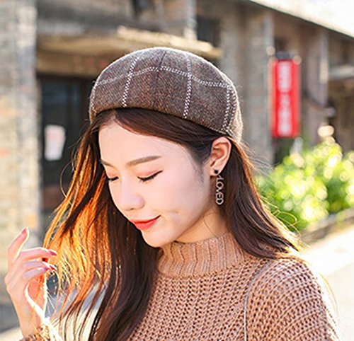 (Gerilea)/Accessories/Hats/DIRECT FROM USA/Gerilea 2018 Fashion Women Retro Beret Hat Warm Plaided Fedora Beanie Skull Caps