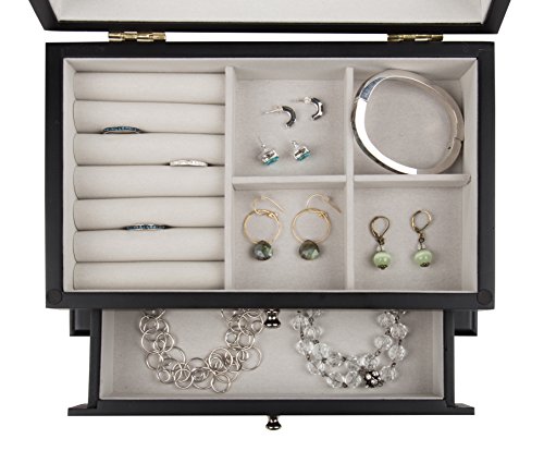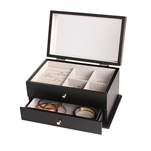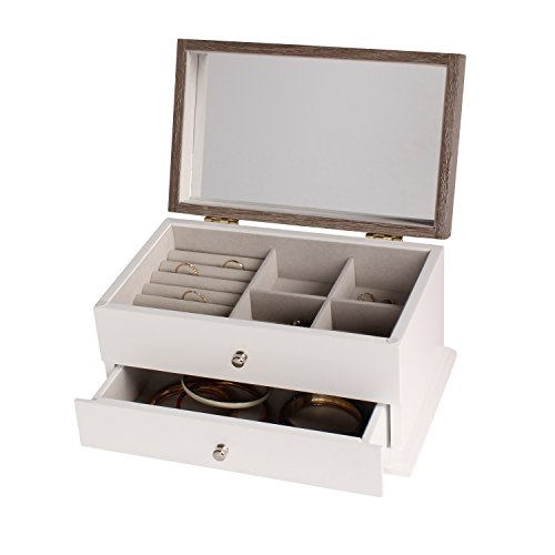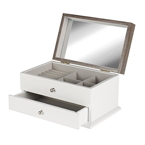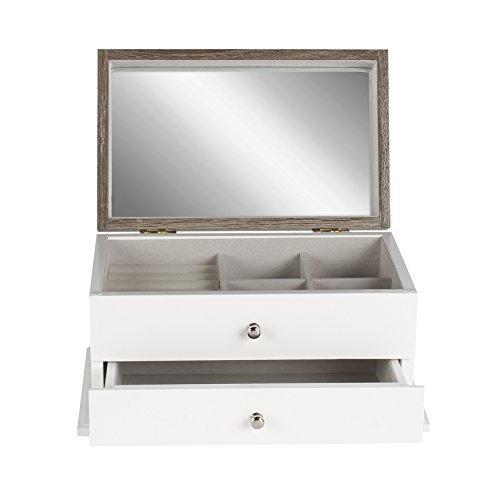 -. Binding : Kitchen -. Brand : Kate and Laurel -. Feature : Decorative countertop jewelry box will keep your valuables safe and organized / Jewelry box has velvet lining, 7 ring rolls, and 4 square compartments each 2.5 by 1 inch deep / Drawer has silver drawer pull, velvet lining, and inner space 8 inches by 4.5 inches by 1.375 inches / Jewelry box is constructed of sturdy MDF and has lid that opens with mirror on inside top cover / Counter display dimensions are 10.25 inches wide by 6.325 inches deep by 5.25 inches high -. Label : Uniek -. Manufacturer : Uniek -. MPN : 210702 -. PackageQuantity : 1 -. PartNumber : 210702 -. ProductGroup : Home -. ProductTypeName : HOME -. Publisher : Uniek -. Studio : Uniek -. Title : Trenn Jewelry Storage Organization Box with Drawer