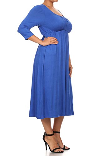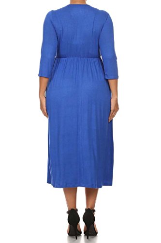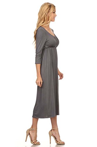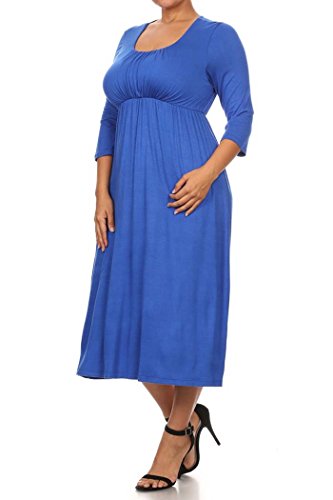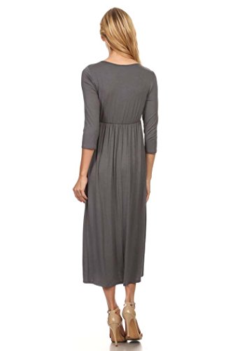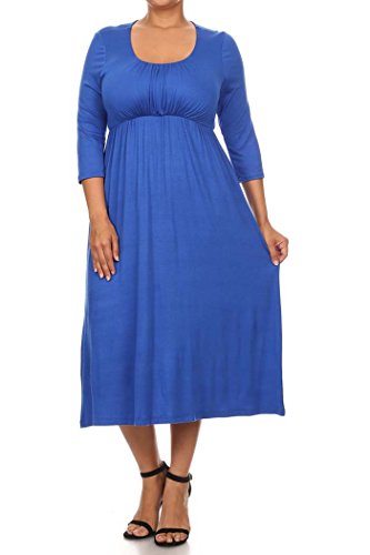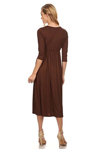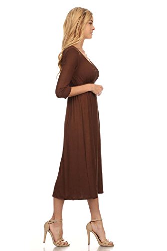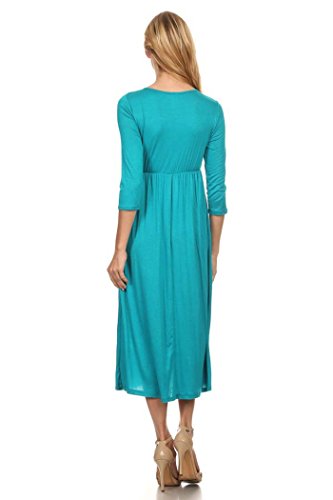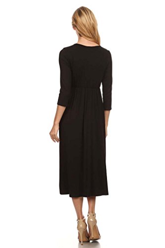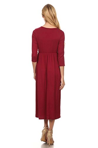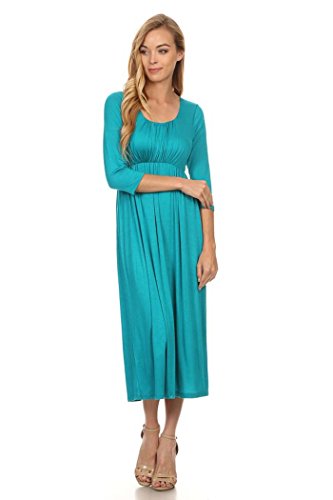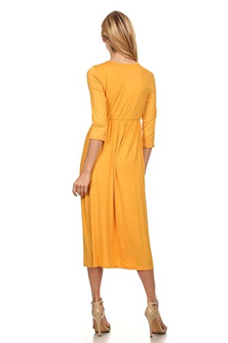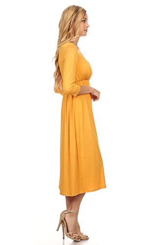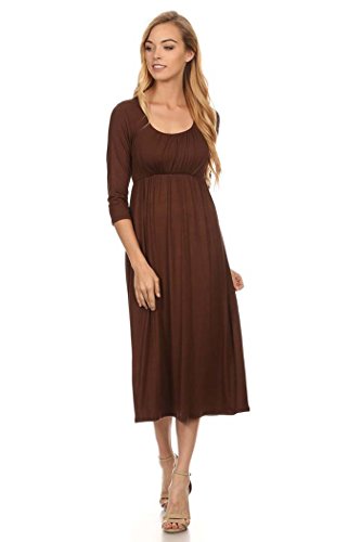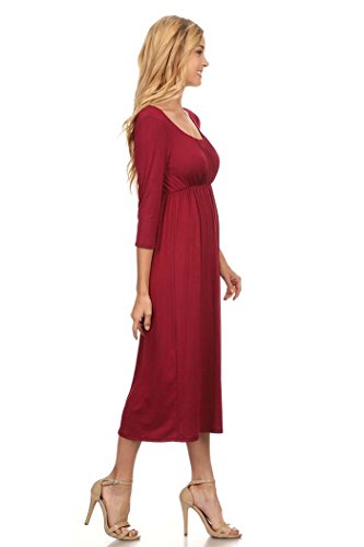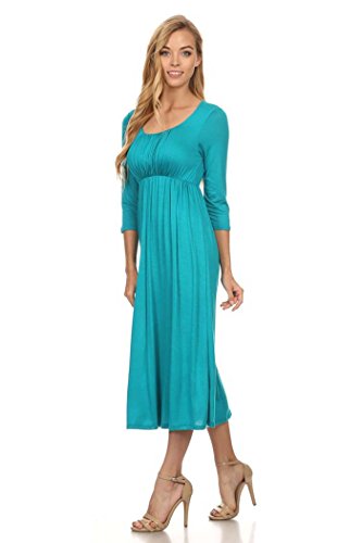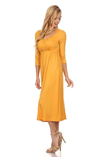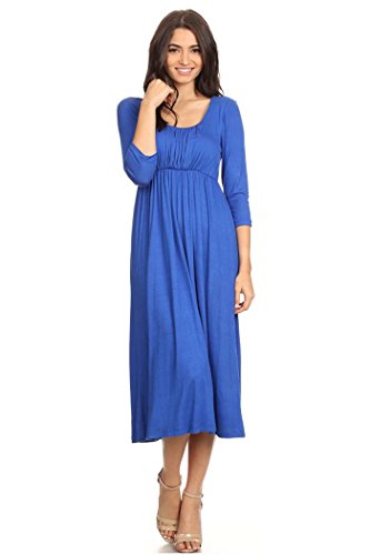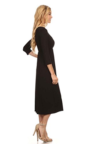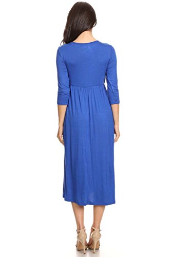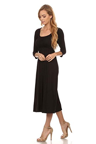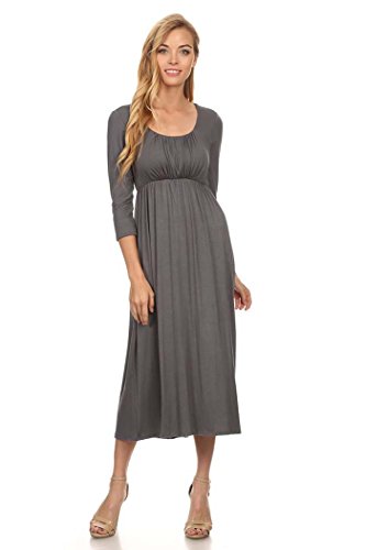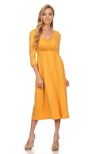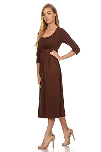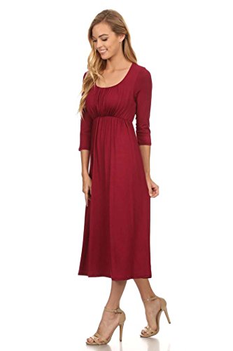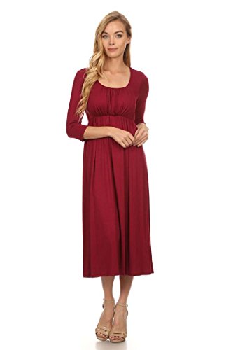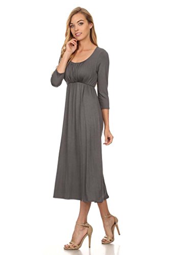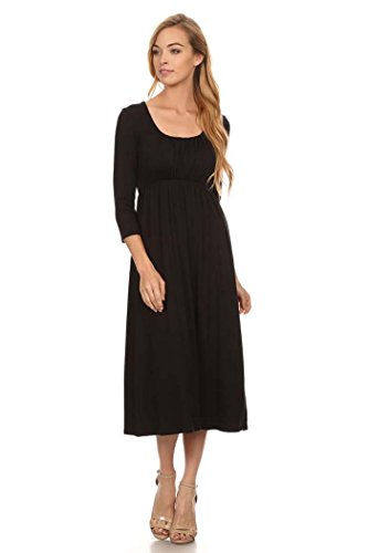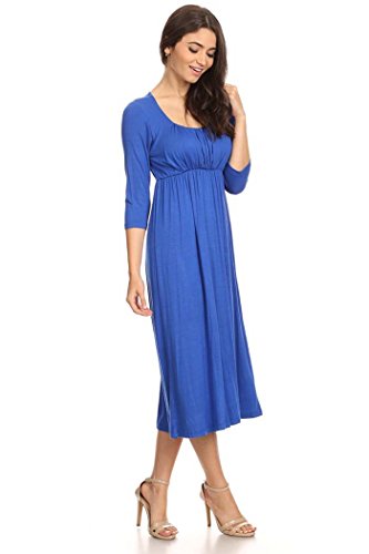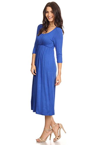 | Women's Solid 3/4 Sleeve Cinched Waist Relaxed Fit A-Line Midi Dress. MADE IN USA |