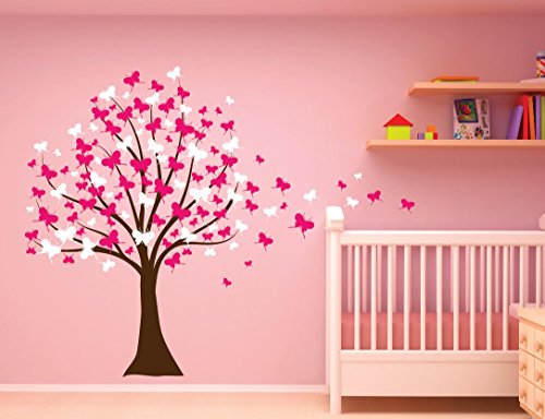 Large Wall Tree Baby Nursery Decal Butterfly Cherry Blossom 1139 (6 Feet Tall) (Pink and White)