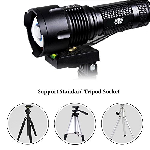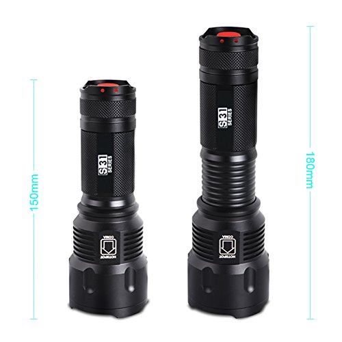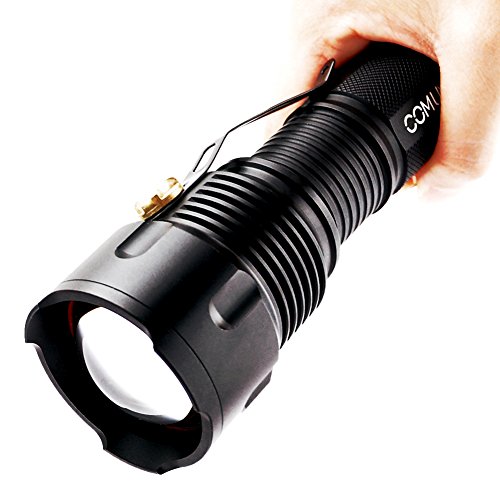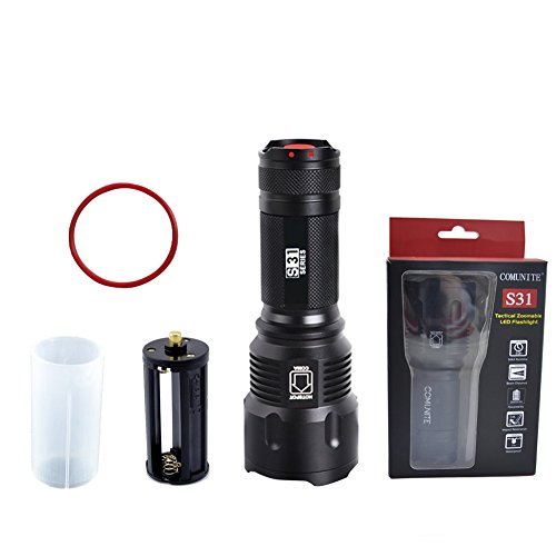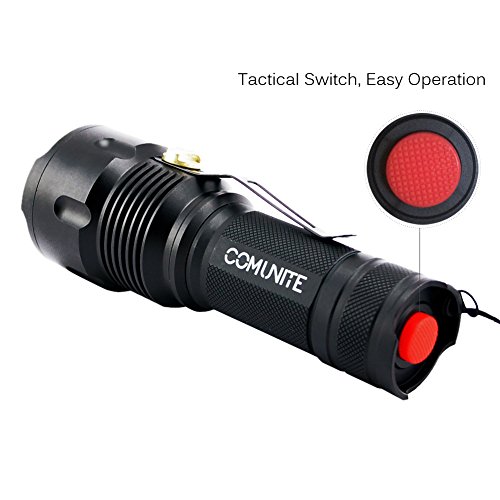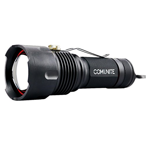 Comunite Cree XM-L T6 Super Bright Led Tactical Flashlight Zoomable Adjustable Water Resistant Torch Lamp with White Tube,Powered By 1pcs 26650 or 3pcs A A Battery Flashlight(Not Included)