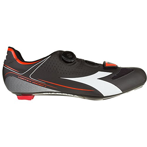 Studio : Diadora Publisher : Diadora Binding : Apparel Product Description Founded in a small Italian town in the middle of last century, Diadora has had a long, admirable history of crafting athletic shoes for soccer, running, cycling, and more. The brand's Vortex Racer II Shoes remain steadfast, mid-range members of its road cycling lineup, with trickle-down technology from pro-level siblings in a design that won't make you feel like you're sacrificing for price. Diadora uses a very similar upper construction throughout its cycling shoes, making small alterations but retaining a balance of mesh and synthetic microfiber to provide a contoured shape and maintain breathability across the top of the foot. For the Vortex Racer II, Diadora uses its lightweight Suprell-Mesh upper, built around its form-fitting race last. Inside the shoe, a perforated EVA insole adds some support along the bottom of the foot, while a shaped heel cup -- the same used in Diadora's pro-level models -- adds security around the heel. To allow for more approachable pricing while retaining stiffness, Diadora adds its Performance Road CR sole to the Vortex Racer. This composite-reinforced platform incorporates the company's NET Breathing System, which is a network of synthetic fibers molded around a breathable and waterproof membrane. This patented, ventilated design anticipates rider perspiration while preventing moisture, mud, and other external elements from getting into the shoes. The design of the sole also keeps stack height and weight to a minimum while maintaining impressive rigidity -- a 6. 0 on the stiffness index -- to deliver valuable watts straight from your feet to the pedals. Finally, Diadora pairs one Boa dial with a hook-and-loop strap to allow for a secure fit without the risk of painful pressure points or numbness across the sensitive areas on the top of your foot. The Vortex Racer II also includes a sturdy Duratech rubber heel pad, which provides excellent surface grip and high abrasion resistance and can be replaced to extend the life of the shoe. 0