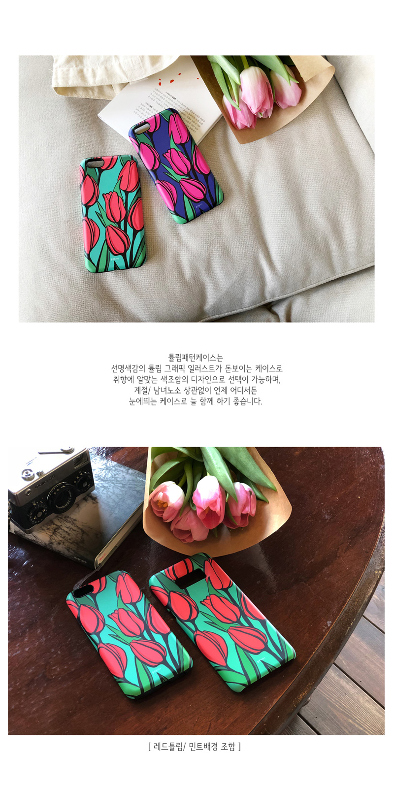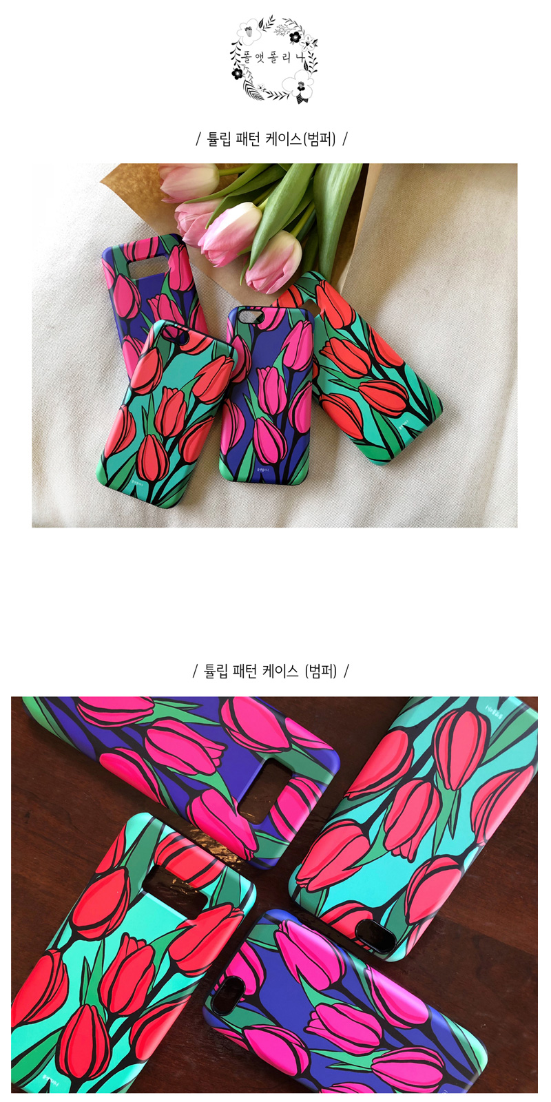 한가득 피어있는 튤립꽃밭이 떠오르게 하는 튤립패턴케이스 입니다.
