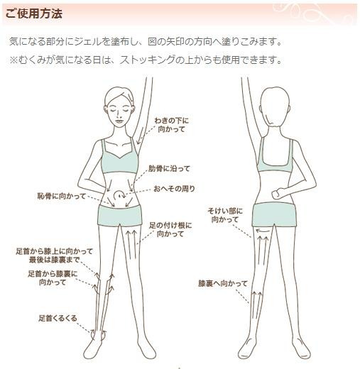 体の気になる部分にジェルを塗布し塗り込んでください。注目成分フィトソニックがお肌にハリをあたえ引き締めます。フィトソニックとは「カフェイン」「グラウシン」「ユーグレナ」を混合した成分のことをいいます。