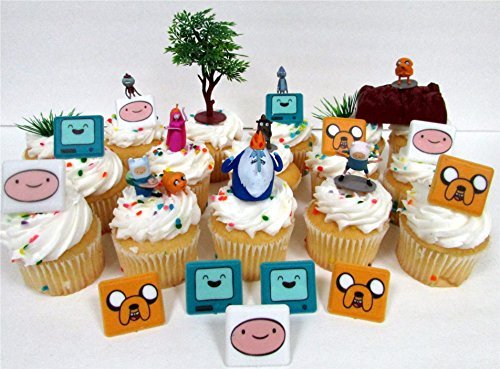 -. Title : ADVENTURE TIME 20 Piece CUPCAKE Topper Set Featuring Finn the Human, Jake the Dog, Ice King, P.R.Incess Bubblegum and Other Figures, Themed Decorative Accessories, Figures Average 1" to 2" Tall