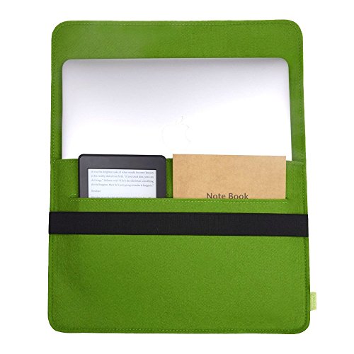 -. Feature : Elegant Eco Felt appearance and fashion simple envelope concept with rubber band buckles gives you unexpected lightweight experience; / Rubber band buckles can open and close easily with the wear-resistant, waterproof, shockproof and breathable function, you could hold it under your arm or just placing inside another bag to carry; / With 2 pockets on the front, there is a smaller compartment, which could hold the adapter, pen, mobile phone, wallet, ID cards, USB cable and keys or a tablet device; / Great for travel and also suitable for your daily life, like school and work, which could be used as a document carrier too; / General stain just wipe gently with a wet cloth, it is very easy to clean.