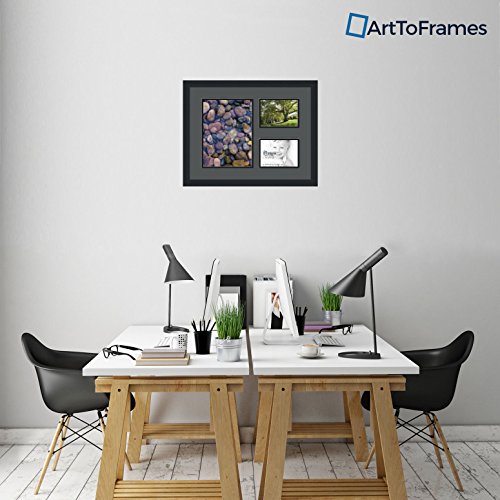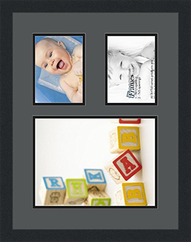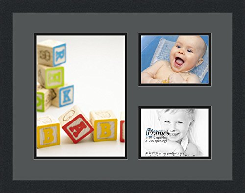 Art to Frames Double-Multimat-1648-41/89-FRBW26079 Collage Photo Frame Double Mat with 1 - 9x12 and 2 - 5x7 Openings and Satin Black Frame