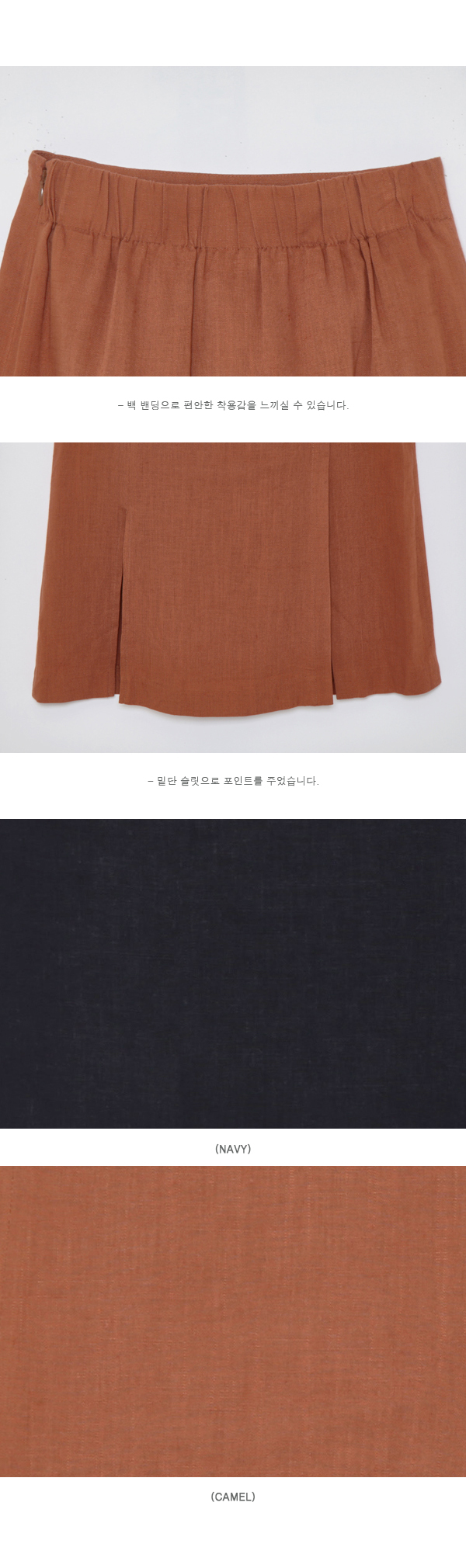 - 백 밴딩과 밑단 슬릿이 포인트로 들어간 린넨 롱 스커트입니다.