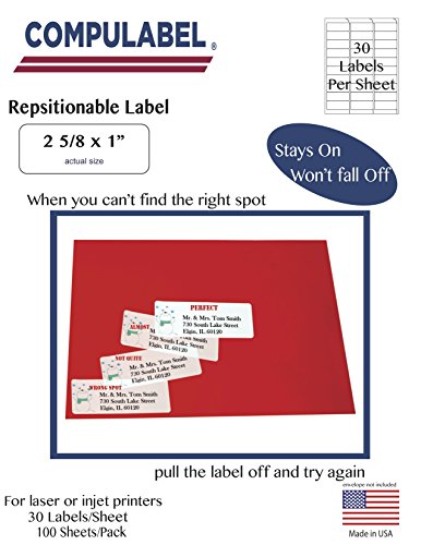 Compulabel White Address, removable adhesive, FAB Labels for Laser and Inkjet Printers, 2 5/8 x 1 Inch, 30 per Sheet, 100 Sheets per Carton