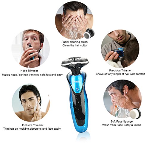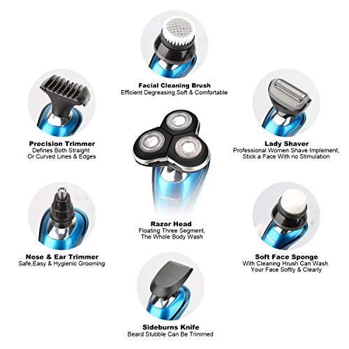 - ❤【7 in 1】Nose trimmer for complete trimming and styling of facial hair for friendly & convenience using,mens trimmers for body hair including Razor head,Facial cleaning brush,Lady shaver,Precision trimmer,Sideburns trimmer,Nose/Ear trimmer,Soft face sponge,comb.