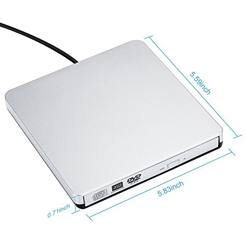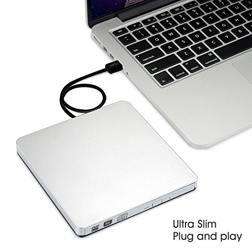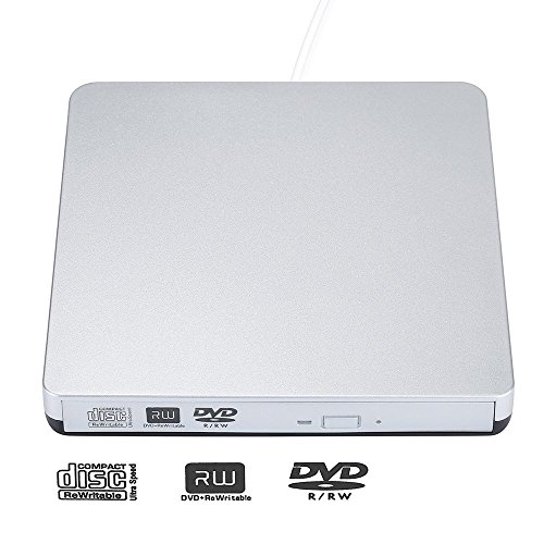 LinGear Slim USB 3.0 and 2.0 Portable CD/DVD-RW Combo Plug and Play Optical Drive for All Devices, (Silver)