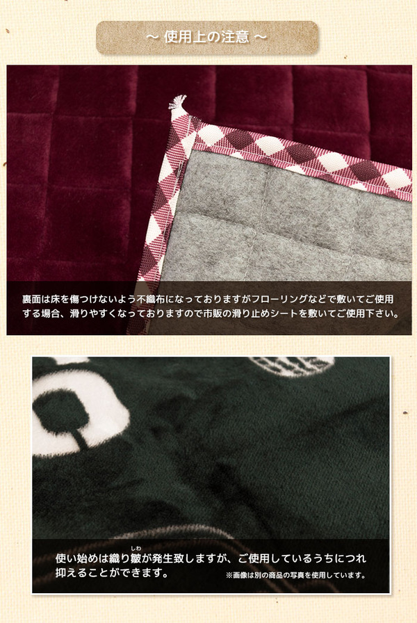※裏地は滑りやすくなっておりますので市販のすべり止めシートを敷いてご使用ください。
