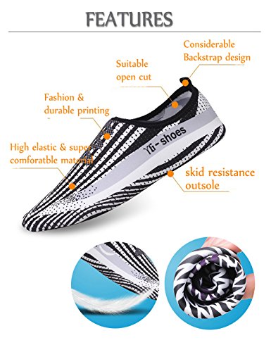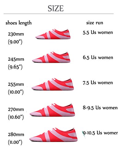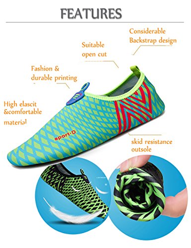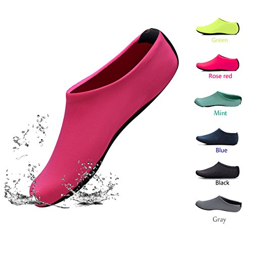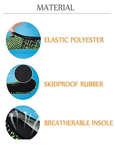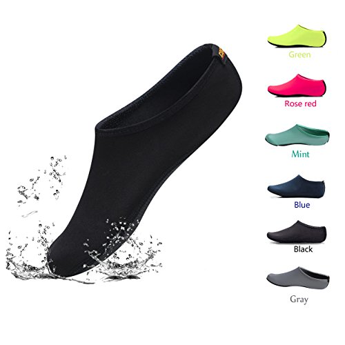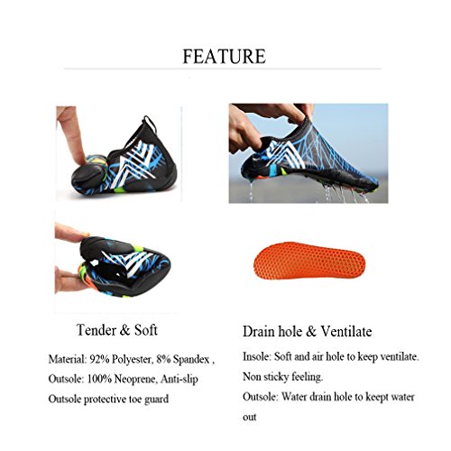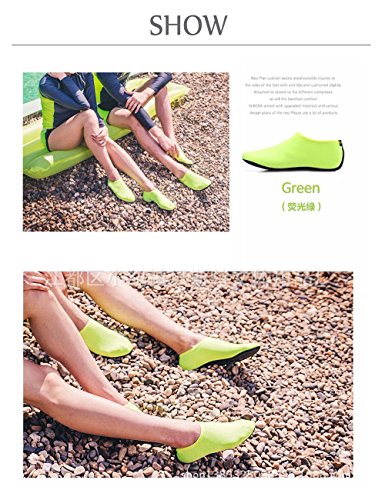 Feature --Multi place use---wading water park, beach and valley,house slippers,garden walking --Multi activities use---Surf,Exercise,Yoga --Fast water repellency effect- it dries fast and fuzzy when it gets wet --Comfortable actions made just like in barefoot --Safety- Environmental material.Not used Chemical glues and it is anti-slip