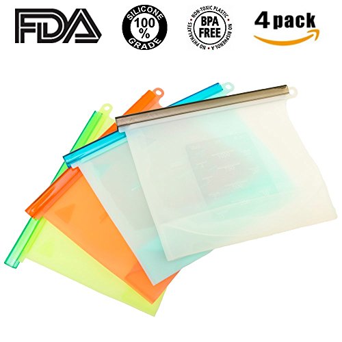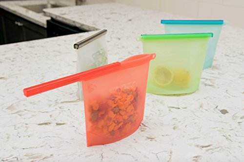1-Liter Reusable Closable Silicone Cooking and Storage Bag Set of 4