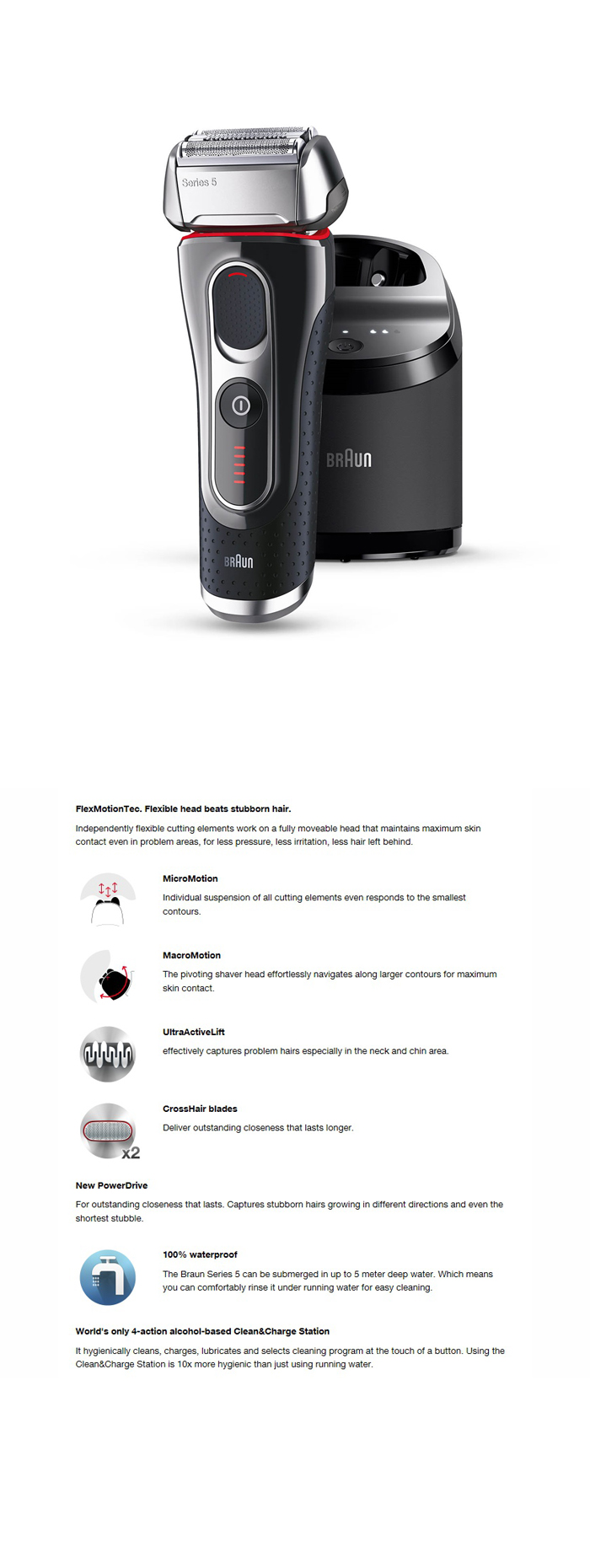 Braun Series 5 5090CC Shaver with Automatic Clean&Charge Station Enpowered by FlexMotionTec and PowerDrive
