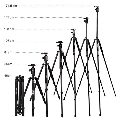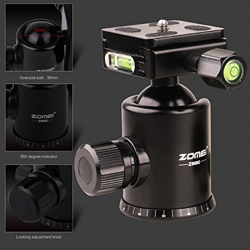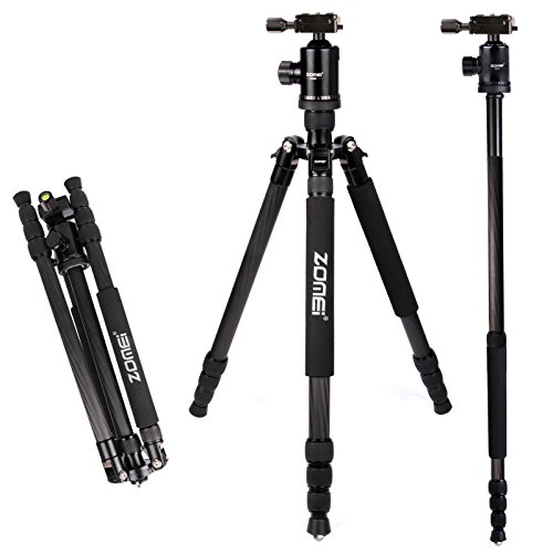 Zomei Z888C Professional Portable Metallic Color Carbon Fiber Tripod & Ball Head Compact Travel for All Canon Sony, Nikon, Samsung, Panasonic, Olympus, Kodak, Fuji, Cameras and Video Camera (Black)