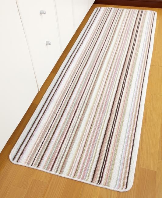 | 幅180cmのロングサイズ☆カラフルでおしゃれなボーダー柄のキッチンマットです。裏面に滑りにくい加工を施しているので、横ズレしにくいです!! |