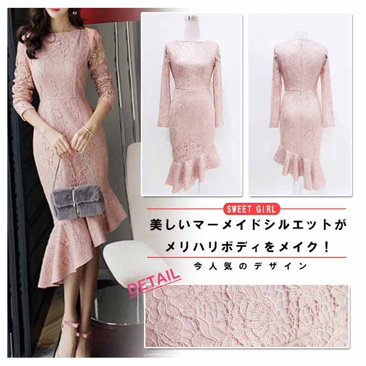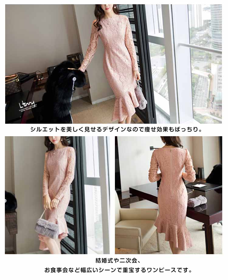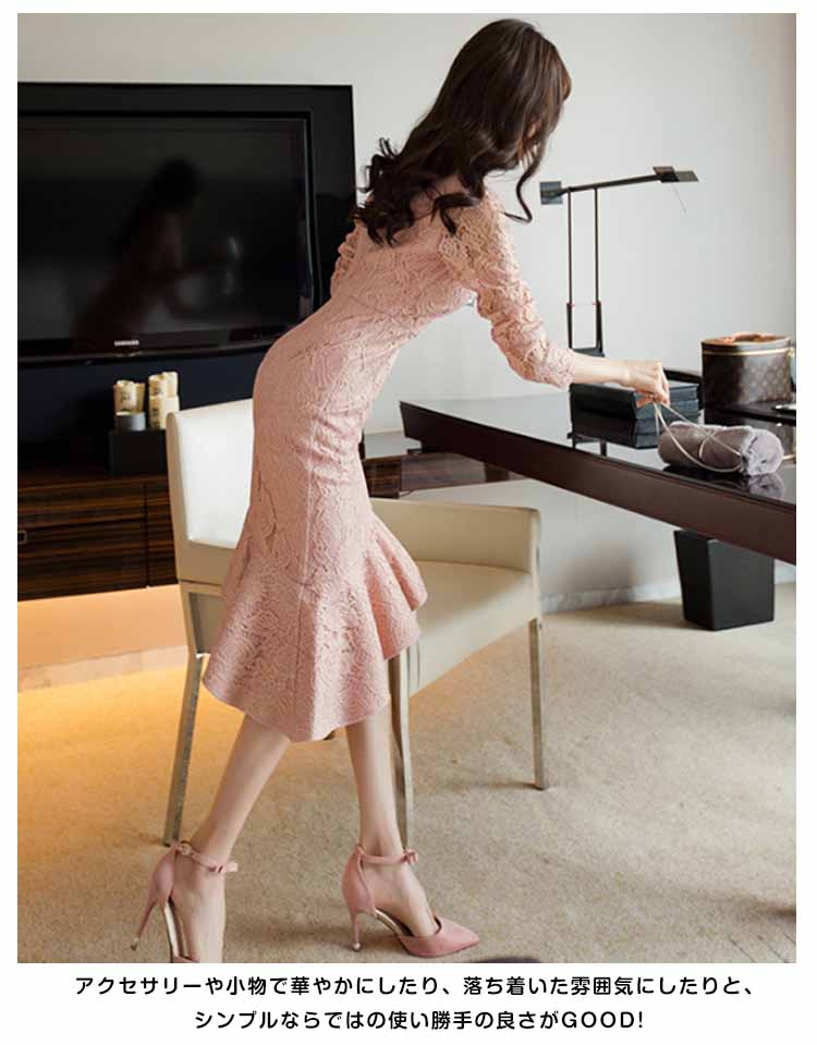 | 美しいマーメイドシルエットがメリハリボディをメイク!女心をくすぐるレースワンピースは男子ウケも間違いなし!フラワーレースが大人の雰囲気を演出します。シルエットを美しく見せるデザインなので痩せ効果もばっちり。 結婚式や二次会、お食事会など幅広いシーンで重宝するワンピースです。アクセサリーや小物で華やかにしたり、落ち着いた雰囲気にしたりと、シンプルならではの使い勝手の良さがGOOD! | |