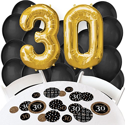 -. Feature : Adult 30th Birthday - Gold - Confetti and Balloon Birthday Party Decorations - Combo Kit / #3 - Mylar Balloon size is 34" - #0 - Mylar Balloon size is 34". / 16 Pack of 11" latex Balloons - (16 Black). Balloons will arrive flat. / 27-piece Party Table Confetti Kit Contains: 6 - 5.5 inch party circles, 9 - 4.25 inch party circles, 12 - 2.75 inch party circles. / Please note, this is faux glitter - it's P.R.Inted to look like glitter, but it is not real glitter.