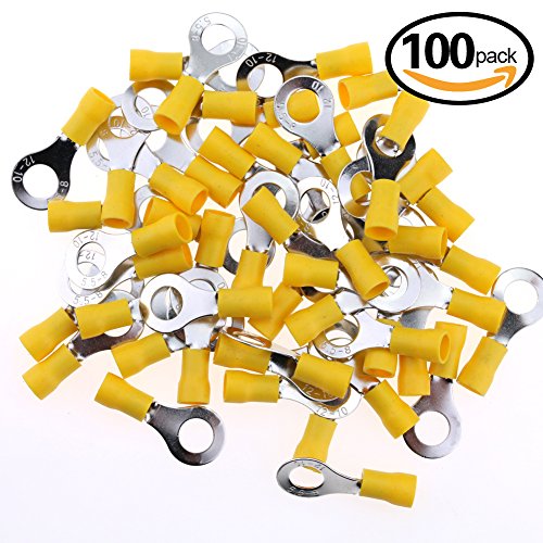 Hilitchi 100Pcs 12-10AWG Insulated Terminals Ring Electrical Wire Crimp Connectors (Yellow - M8) (Yellow - M8)