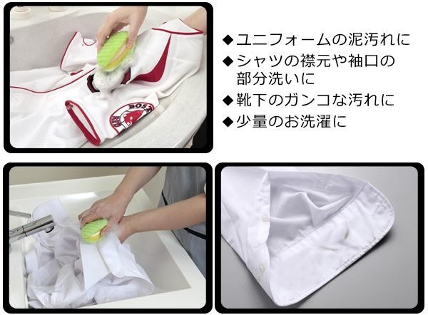 | 野球やサッカー、その他スポーツの部活ユニフォーム等の汚れに!洗濯機だけでは落ちにくい汚れや部分洗いに最適な洗濯用クリーナーです。クリーナーは両面使用可能。水切りの良いスポンジ(ムマック)を使用しています。収納に便利なフック付♪ |