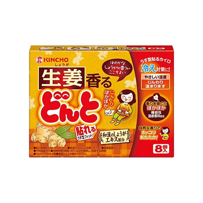 원본상품명: KINCHO 香るどんと 薄型貼るカイロ 機能性?感香料 和漢しょうがエキス配合 8個 (函入)