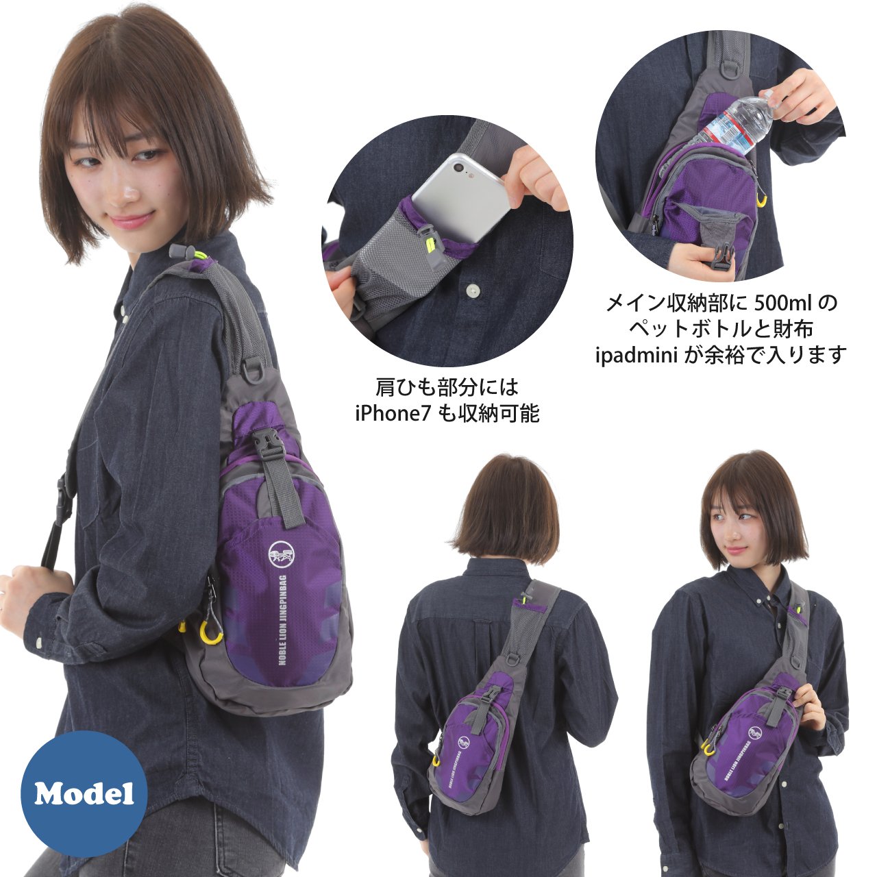 For example, 500 ml of PET bottle and wallet in the main storage part, ipadmini, iphone 6 plus and accessories enter the sub storage part with plenty of room.