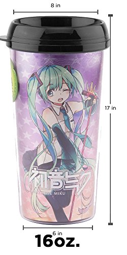 Look! It's your perfect travel mug. Featuring Hatsune Miku by Crypton, this travel mug is stunning with its double character print and pastel colours. It's time you to start carrying your coffee in style. Mugs designed for usage when driving are called auto mugs or commuter mugs, as they enable users to enjoy a beverage while driving. Travel mugs have a spill-proof lid with a sipping opening[14] and in many cases, a narrower base, so that they will fit into the cup-holders that are built into many vehicles.Additional criteria for evaluating auto mugs include: they must be easy to open single-handedly (to prevent distractions while driving), include a fill line (to prevent over-filling, which contributes to leaking), preferably have no handles (no-handled mugs are easier to grab while driving), should not obstruct a driver's view of the road when he or she is drinking, and - with regard to cup-holders be able to fit, stably, into a wide range of mug holders.Feature