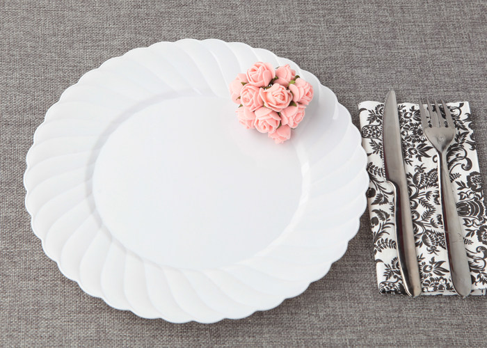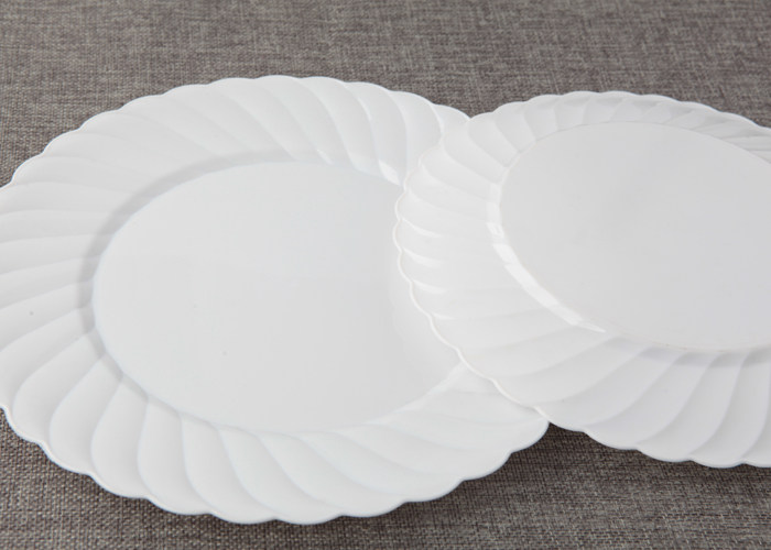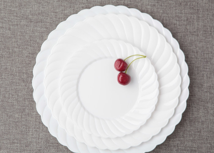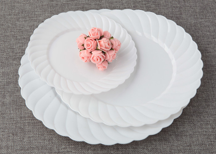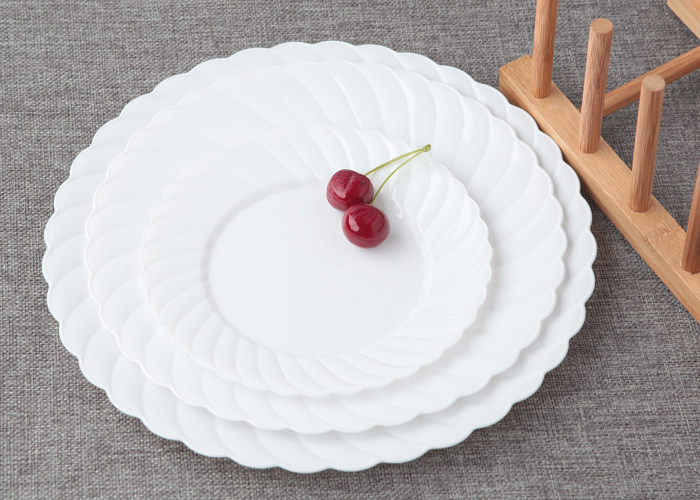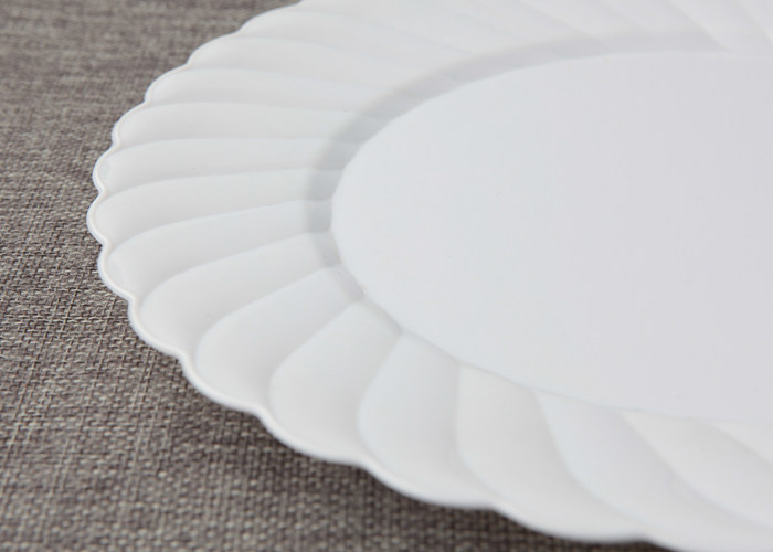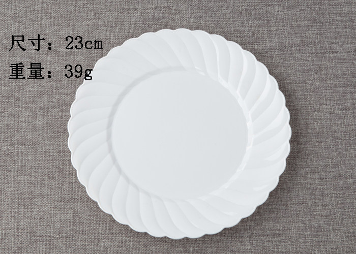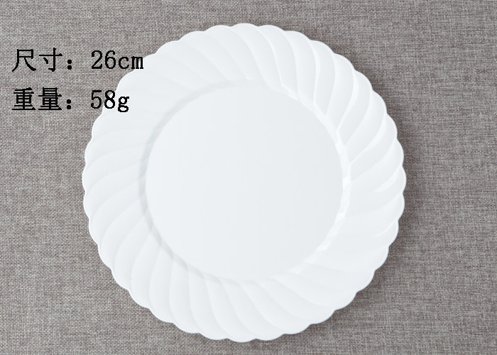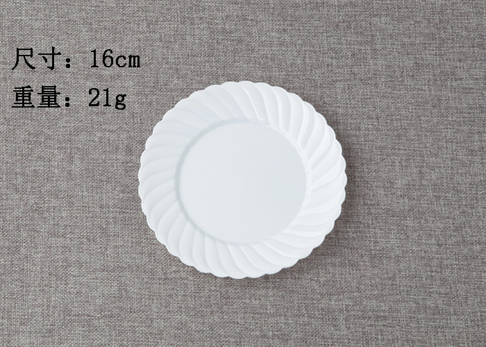 一次性创意塑料花边白色盘子 圆形西式餐盘派对摆盘 水果点心碟子
