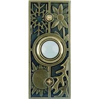Wired push button in seasonal design with lighted white push button. Solid brass escutcheon, flush mounted. 8 to 24V. No. DH1691L: Antique No. DH1695L: Copper