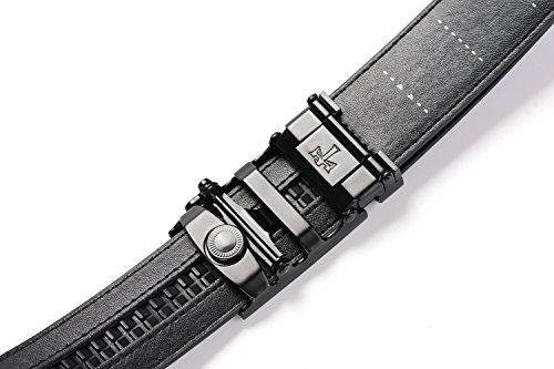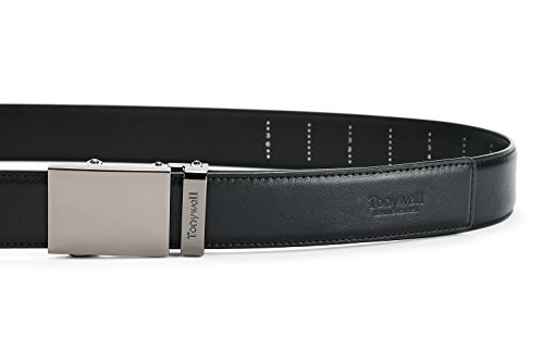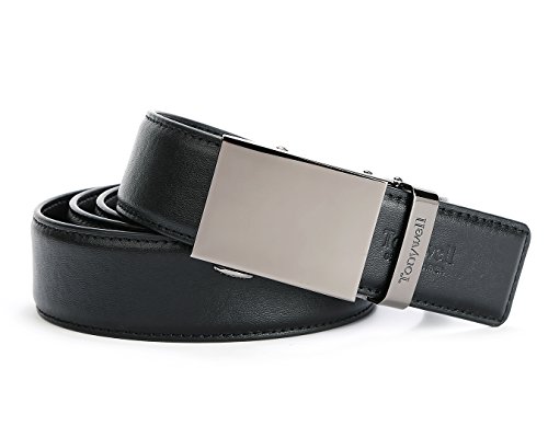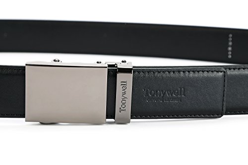 -. Feature : Genuine Leather - 3.5cm wide, smooth leather with no needless holes to crack or wear out / Easy to use.Simple, smooth ,just slide the belt into the buckle and pull the belt through, the buckle simply auto locks the belt. / Tonywell leather belts for men features an easy removable buckle that allows you to cut the belt to your ideal size to give a primmer appearance. / import