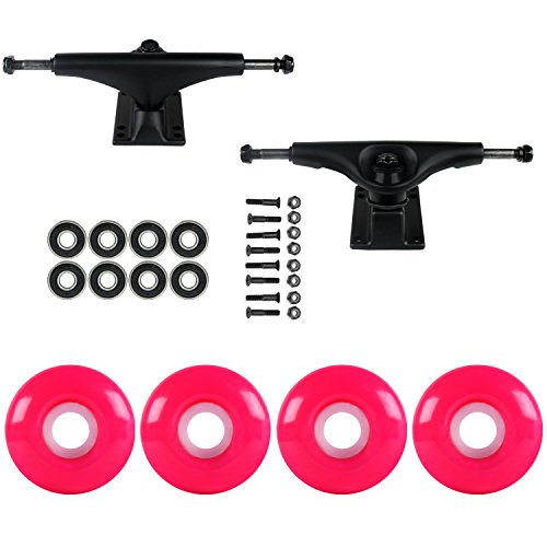 Studio : TGM Skateboards Publisher : TGM Skateboards Binding : Misc. Product Description Set up your new deck or upgrade you current one with this Trucks/Wheel/Bearing/Hardware package! Included in this package is a set of 4 52mm Polyurethane Skateboard wheels from a leading manufacturer in the industry. Coming in at 97A, these are the perfect wheels for street and park skating. Also included is a set aluminum 5.0 Havoc trucks. These trucks fit on boards from 7.3" to 8.1" wide. To finish out the package we include a set of precision abec 7 bearings and 1" hardware. 0