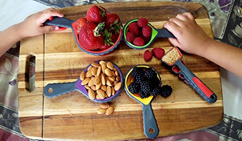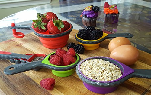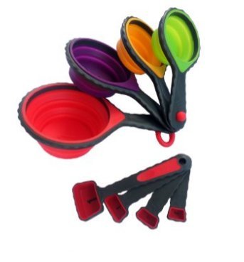 -. Feature : ECO FRIENDLY: Smart Kook Measuring Set are Non-stick, Flexible and Very Easy to Clean. Safe to use in Microwaves, Dishwashers and Freezers / 100% FOOD GRADE SILICONE MATERIAL: BPA Free and FDA Approved, Non-toxic. - Simple, Practical and Easy to use. / SPACE SAVER: Practical and simple. Cups Pop into Shape for use and Collapse for Easy Storage. They take up Almost No Space in Your Kitchen Drawers, Making Storage Easy! / COMFORTABLE GRIP: The Non-slip Handles for Easy and Comfortable grip. The Collapsible Design of the Smart Kook Measuring Set Makes Food and Dessert Preparation Easier! / FUN COLORS: The Set Includes 4 Colorful Sleek Collapsible Measuring Cups and 4 Measuring Spoons. 1 cup (250ml), 1/2 cup (125ml), 1/3 cup (80ml) and 1/4 cup (60ml). Spoons Measure 1 Tbs (15ml), 1 Tsp (5ml), 1/2 Tsp (2.5ml) and 1/4 Tsp (1.25ml).
