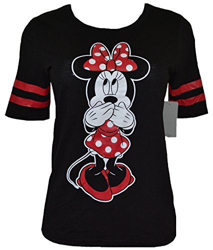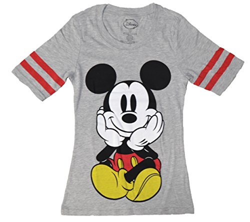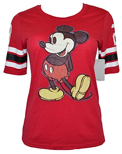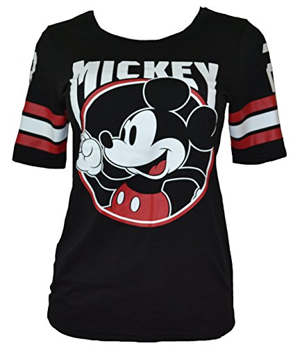 Disney Mickey & Minnie Jersey Style Stripe Sleeve shirt Slim fitting. Women's Sizing Authentic Disney Licensed Products Machine Washable cold. Brand : Mickey Minnie Mouse Clothing EAN : 0742849888332 Package Dimensions(LxWxH) : 23x23x3cm ; 113 g
