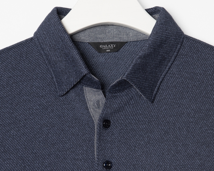 갤럭시 라이프 스타일의 버튼다운 칼라넥 티셔츠입니다.코튼 혼방 소재를 사용하여 가볍고 부드러운 착장감을 보여주는 제품입니다.은은한 컬러감으로 포인트를 주었으며 버튼다운형 칼라로 다양한 연출이 가능한 제품입니다.