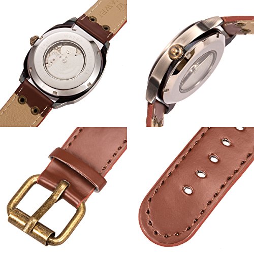 -. Title : ManChDa メンズ 時計 復古風 自動巻き 機械式 運動 腕時計 スケルトン レザー