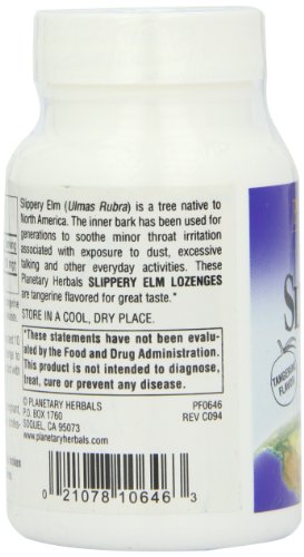 Studio : PLANETARY HERBALS Publisher : PLANETARY HERBALS Binding : Health and Beauty Product Description Slippery elm (ulmas rubra) is a tree native to North America. The inner bark has been used for generations to soothe minor throat irritation associated with exposure to dust, excessive talking and other everyday activities. These PLANETARY HERBALS great tasting tangerine flavored slippery elm lozenges contain echinacea and vitamin C for immune support. 0