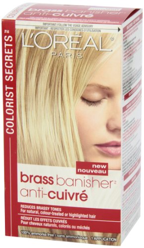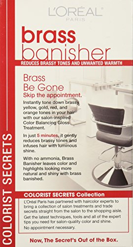 Brass Banisher reduces brassy tones and unwanted warmth for cooler, more beautiful, balanced color. Instantly tone down brassy yellow, gold, red, and orange tones in your hair. This salon-inspired treatment works in just 5 minutes and leaves hair looking natural and full of luminous shine.Feature