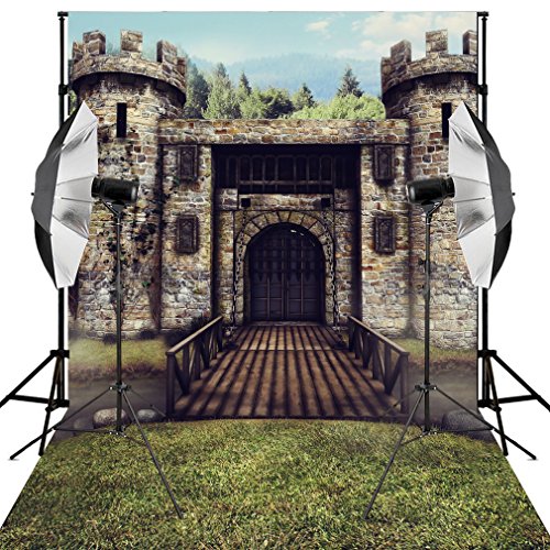 Kooer 6X9ft Seclusion Stone house Lawn Wooden Bridge Vinyl Fabric Photography Backdrops