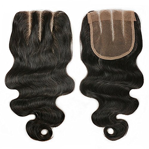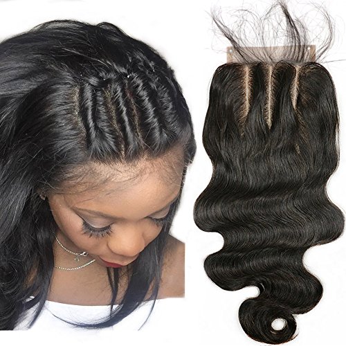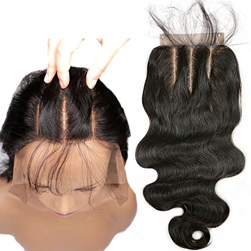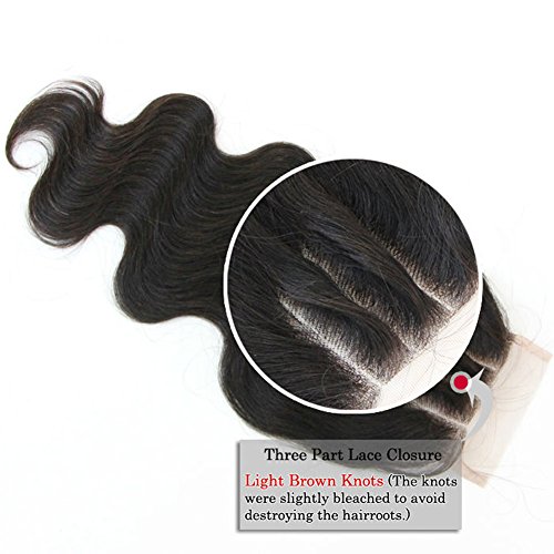 3 Part Lace Closure 4x4 Body Wave Human Hair Closure Piece with Baby Hair Natural Black Color No Bleached Knots (8 inch)