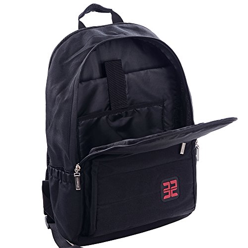 -. Feature : Approx Dimensions: 11.0" L × 4.7" W × 16.9" H . Light Weight :1.1 pounds .Fits for your 14-15 inch laptop to school or work . / WATER RESIST: this backpack is made of high quality 1680D Nylon , shows a great performance in rip and abrasion resist / This backpack is really perfect for school, work, commuting, travel or any other outdoor activities . / Hat of Backpack : from the last picture , you can see there is a hat in the top , it is made from mesh material and can prevent your head from the rain and scorching sun . / Total of 7 various compartments: 2 main compartments with lots of interior pockets .1 hat pocket in the back, 1 laptop sleeve with velcro tape, 1 book sleeve , 2 side pocket, 1 front pocket