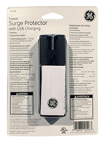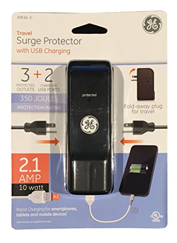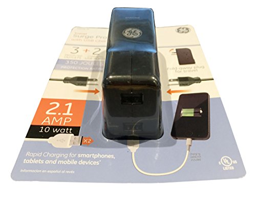 GE Travel Charger Surge Protector with Dual USB Ports (2.1 Amp / 10 Watt)