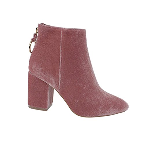 (Yoki)/Women's/Boots/DIRECT FROM USA/Yoki FN91 Women's Back Zipper Wrapped Chunky Heel Ankle Velvet Booties